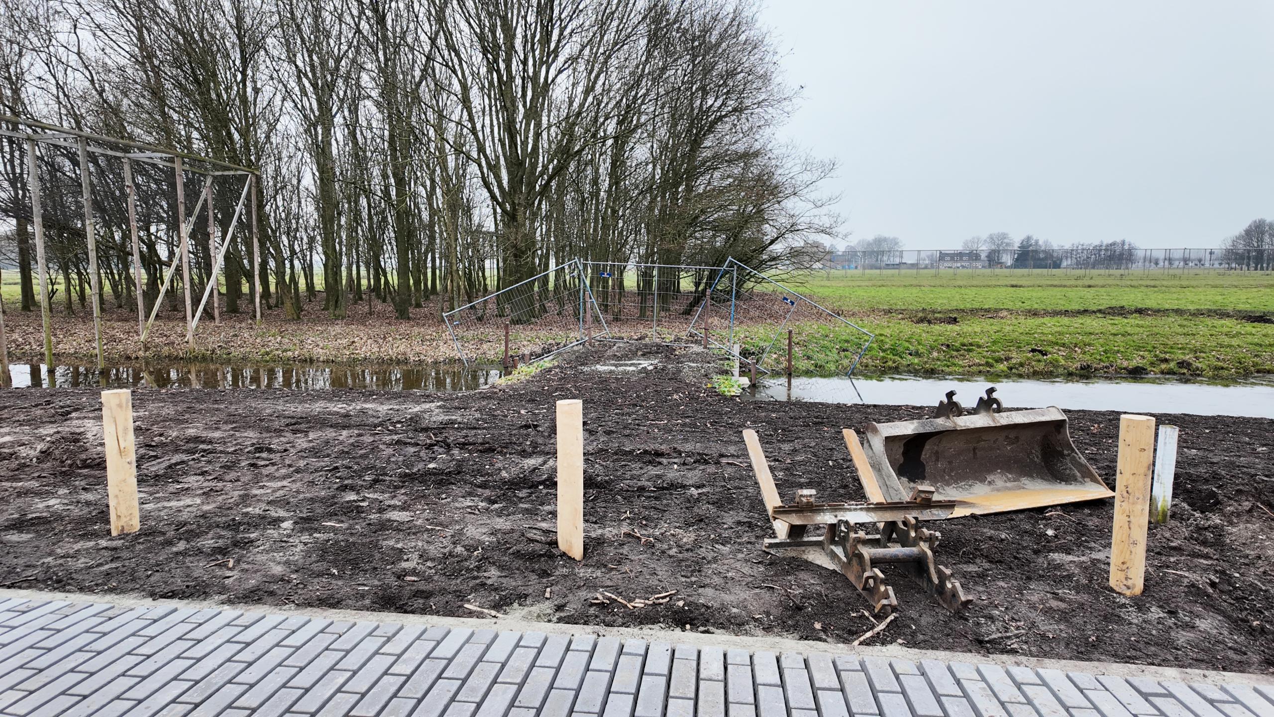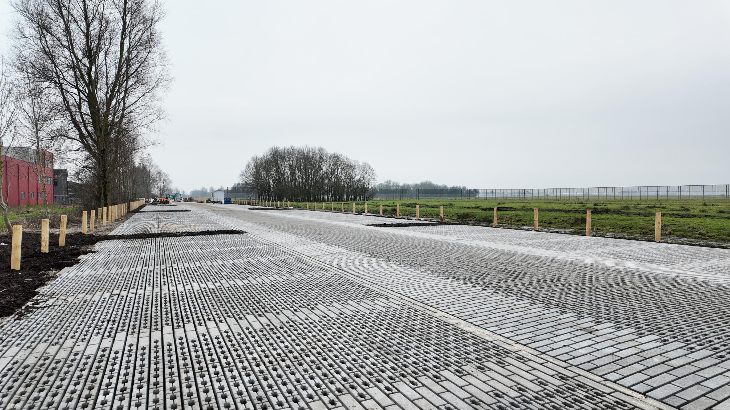 Het Lekweidepad was sinds 2024 afgesloten vanwege de bouw van het nieuwe gemeentehuis en het naastgelegen parkeerterrein.